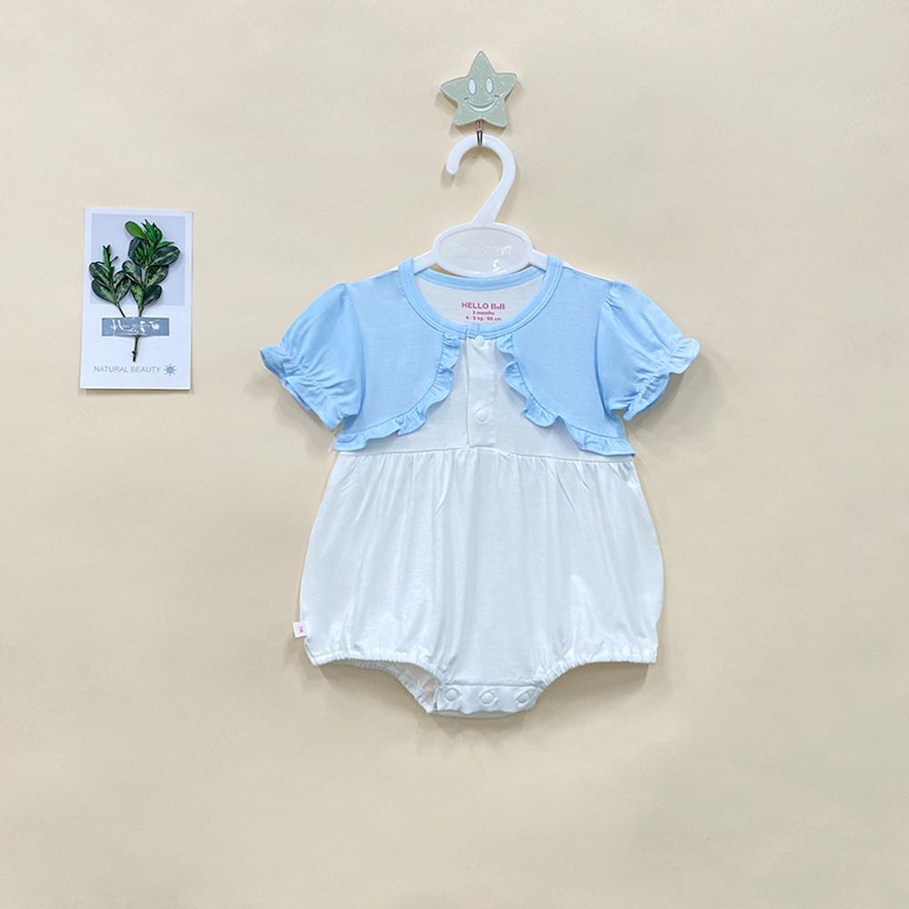 Kiểu dáng: Thân trên như chiếc áo khoác lửng rời trông bé như được khoác thêm chiếc áo khoác lửng bên ngoài bodysuit giúp bé thêm xinh xắn hơn. Phom body liền quần tiện lợi, giúp bé thoải mái vận động mà không lo bị hở bụng hay cấn vướng. Nút bấm tiện dụng, giúp mẹ dễ dàng thay tã hay thay đồ cho bé.