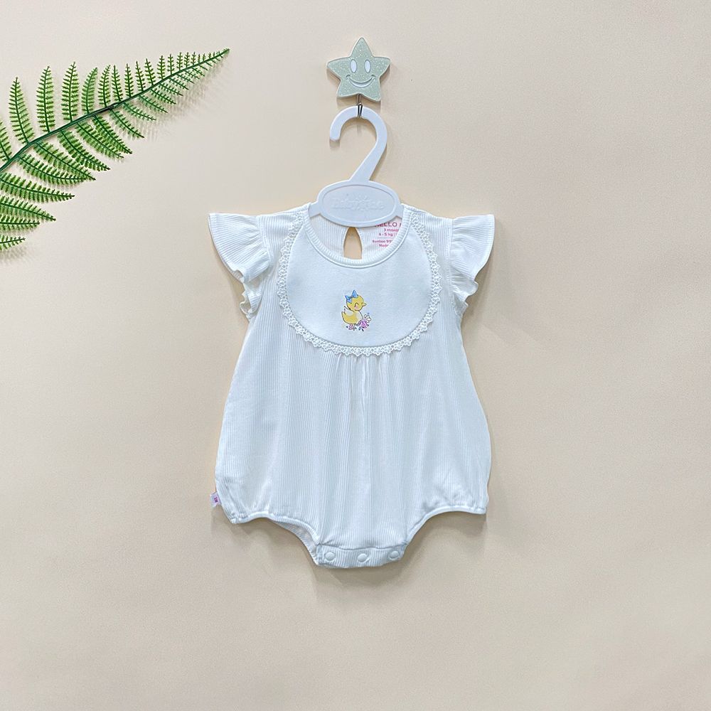 * Kiểu dáng: Thiết kế yếm ren trước ngực xinh xắn kết hợp đôi tay cánh tiên tôn lên vẻ đáng yêu, nữ tính của bé. Phom body liền quần tiện lợi, giúp bé thoải mái vận động mà không lo bị hở bụng hay cấn vướng. Nút bấm tiện dụng, giúp mẹ dễ dàng thay tã hay thay đồ cho bé.