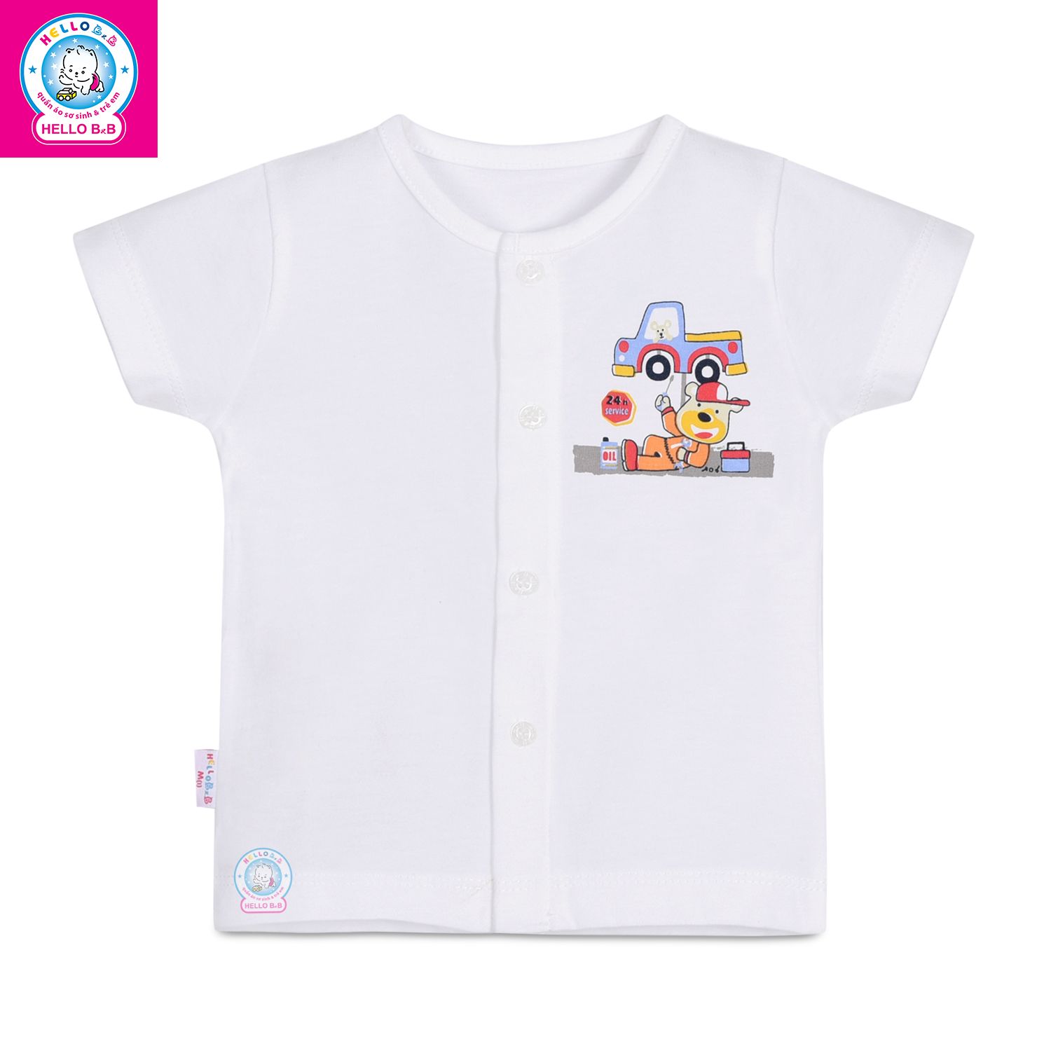 Áo cài giữa trắng tay ngắn AL0002 (hình in ngẫu nhiên) - HELLO BnB
