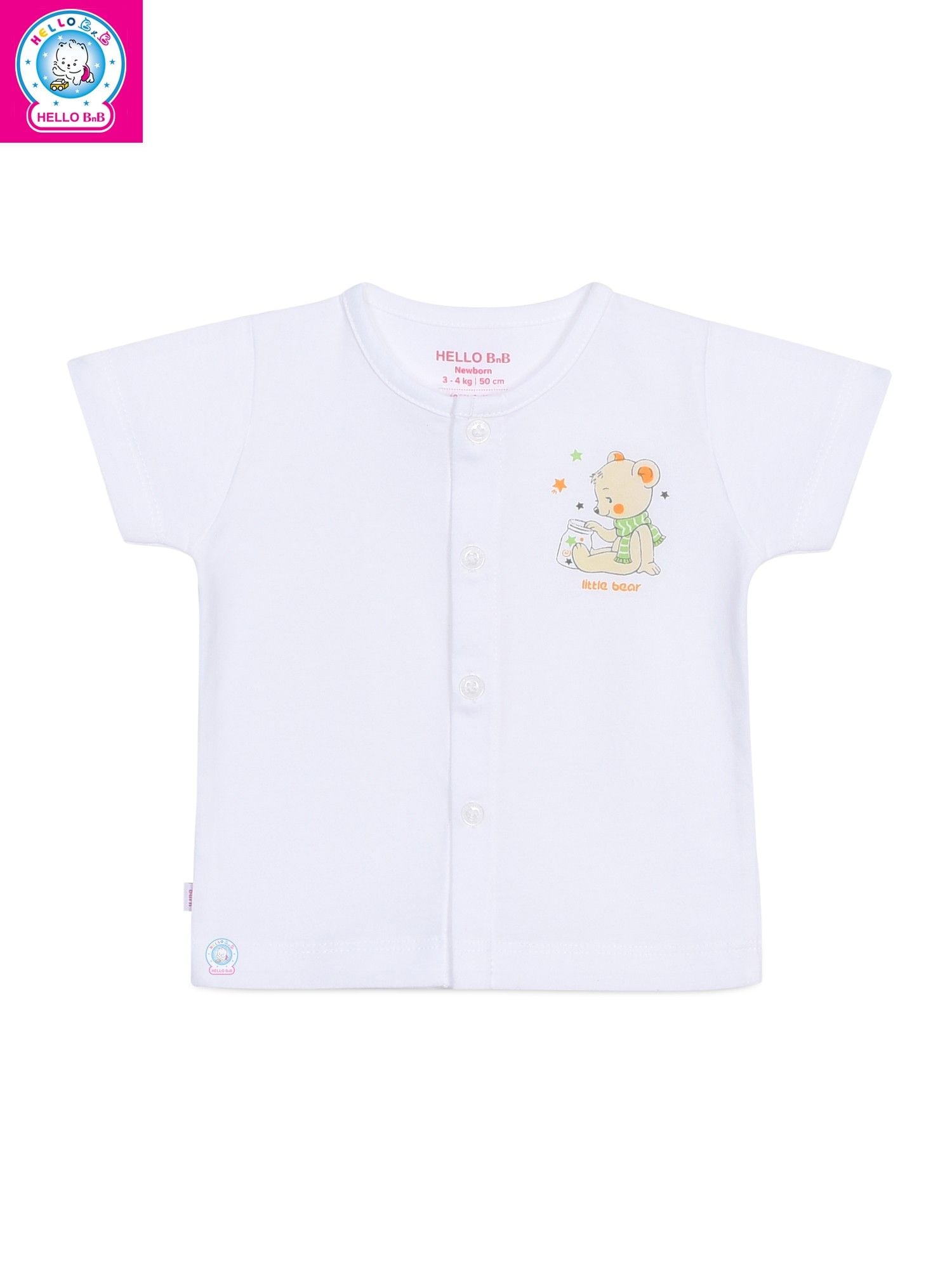 Áo Cài Giữa Trắng Tay Ngắn - AL0006 được may từ 100% cotton cho bé thấm hút mồ hôi, cho bé thoải mái vận động.
