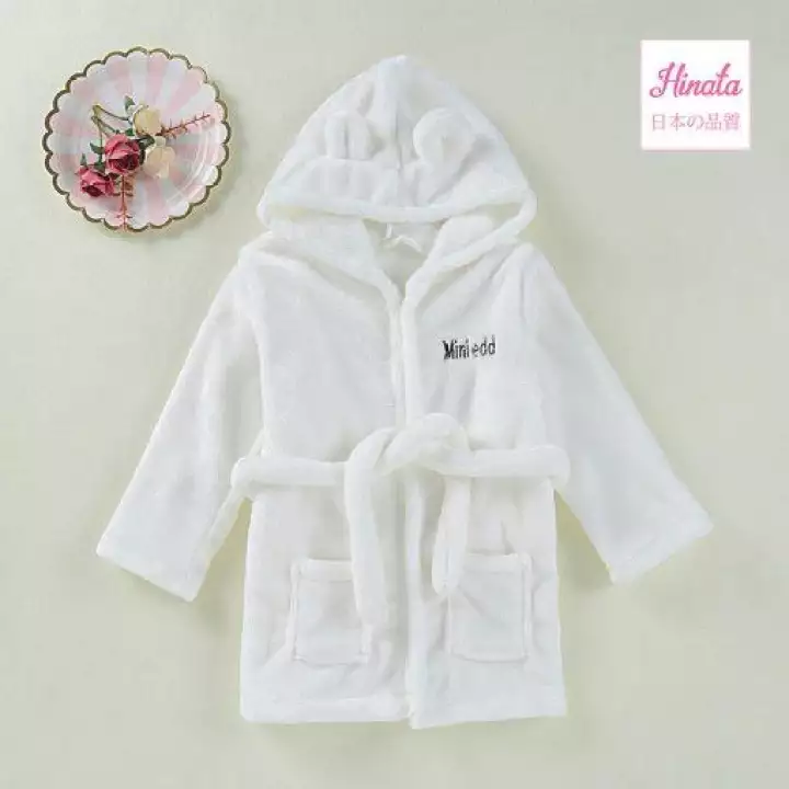 - Thiết kế áo choàng tắm trẻ em có dây buộc ở thắt lưng, phần mũ đáng yêu với tai gấu ngộ nghĩnh