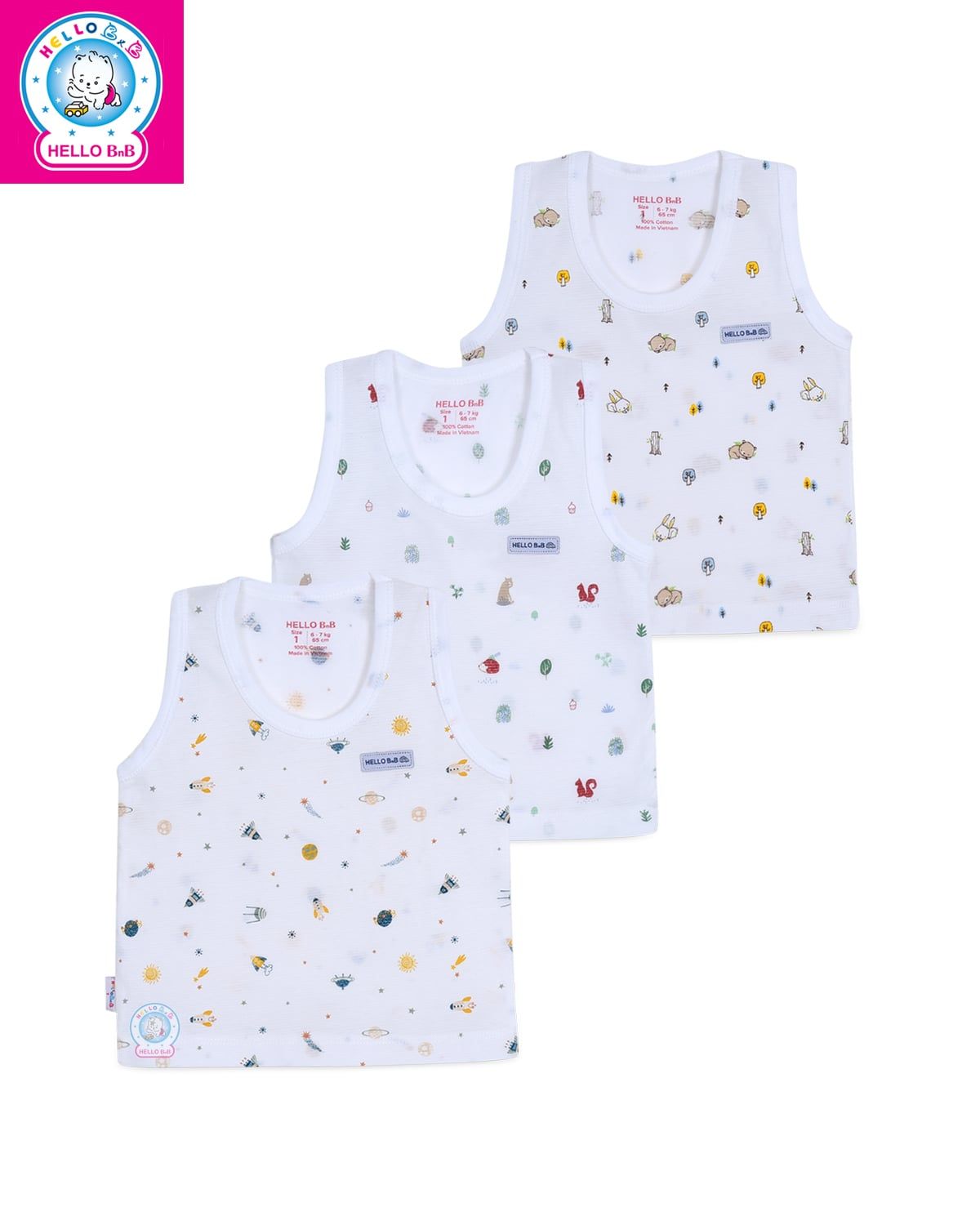 Áo lá in họa tiết bé trai 0042 - HELLO BnB với chiếc áo họa tiết dễ thương, mỏng nhẹ phù hợp cho các bé mặc lót trong áo sơ mi hay đơn giản mặc nhà cho mát mẻ những ngày nóng bức đều được.