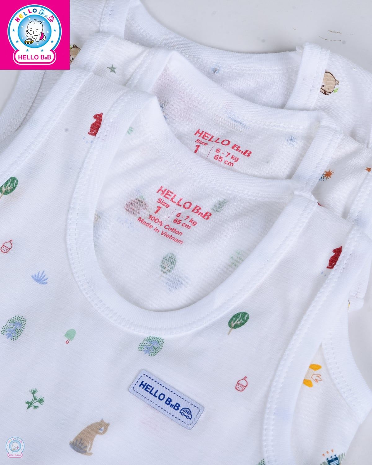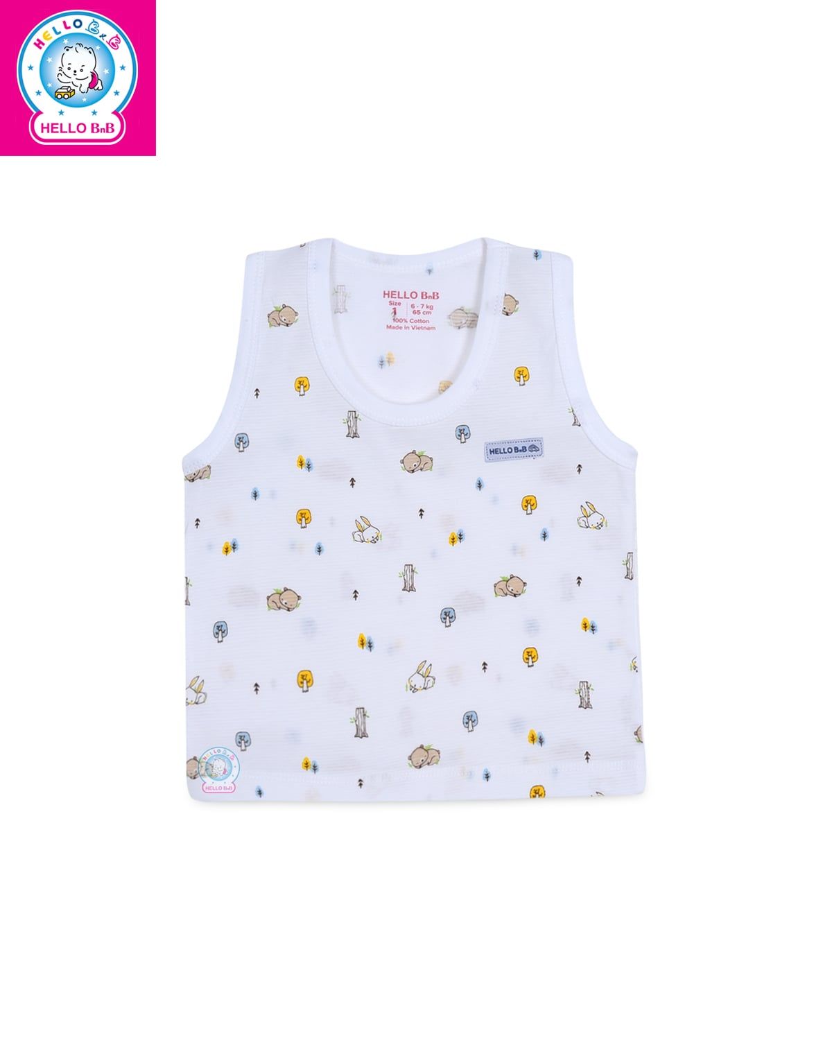 Kiểu dáng áo sát nách basic được in họa tiết li ti sống động và được đính logo nhỏ xinh trên ngực áo.
