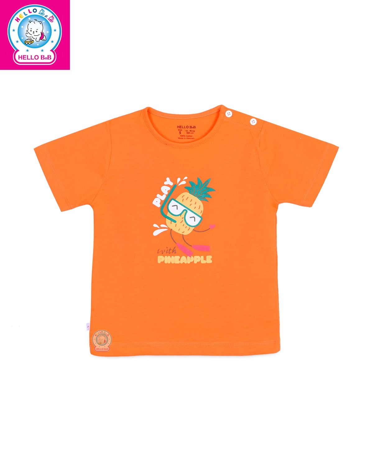 Áo có dáng tay ngắn, phù hợp cho bé mặc ở tất cả các mùa và mặc thường ngày khi ở nhà. Tay áo được cắt may vừa vặn, tạo sự thoải mái và không gây vướng víu khi bé cử động. Áo có nút cài ở vai giúp việc mặc và tháo áo dễ dàng hơn mà còn mang lại một vẻ ngoài gọn gàng, dễ thương.