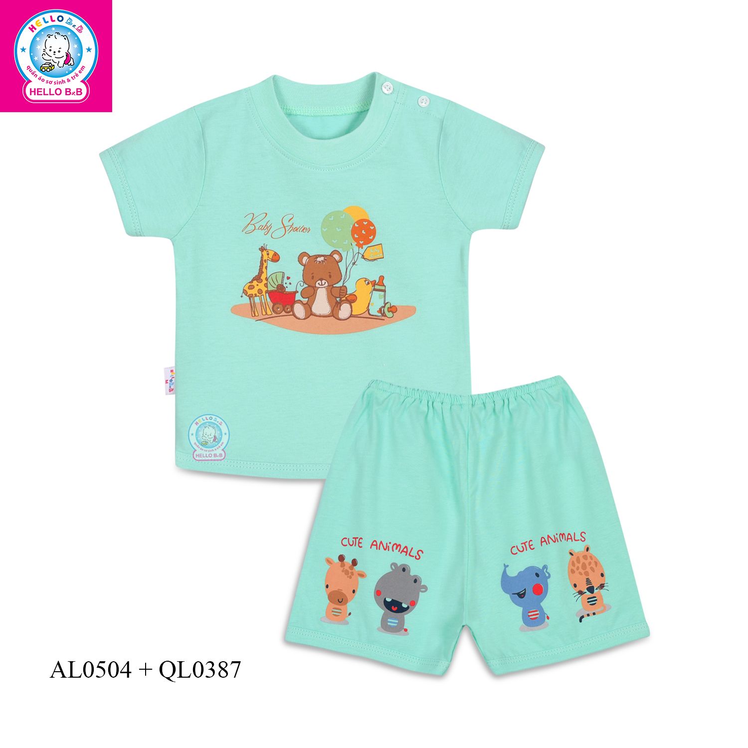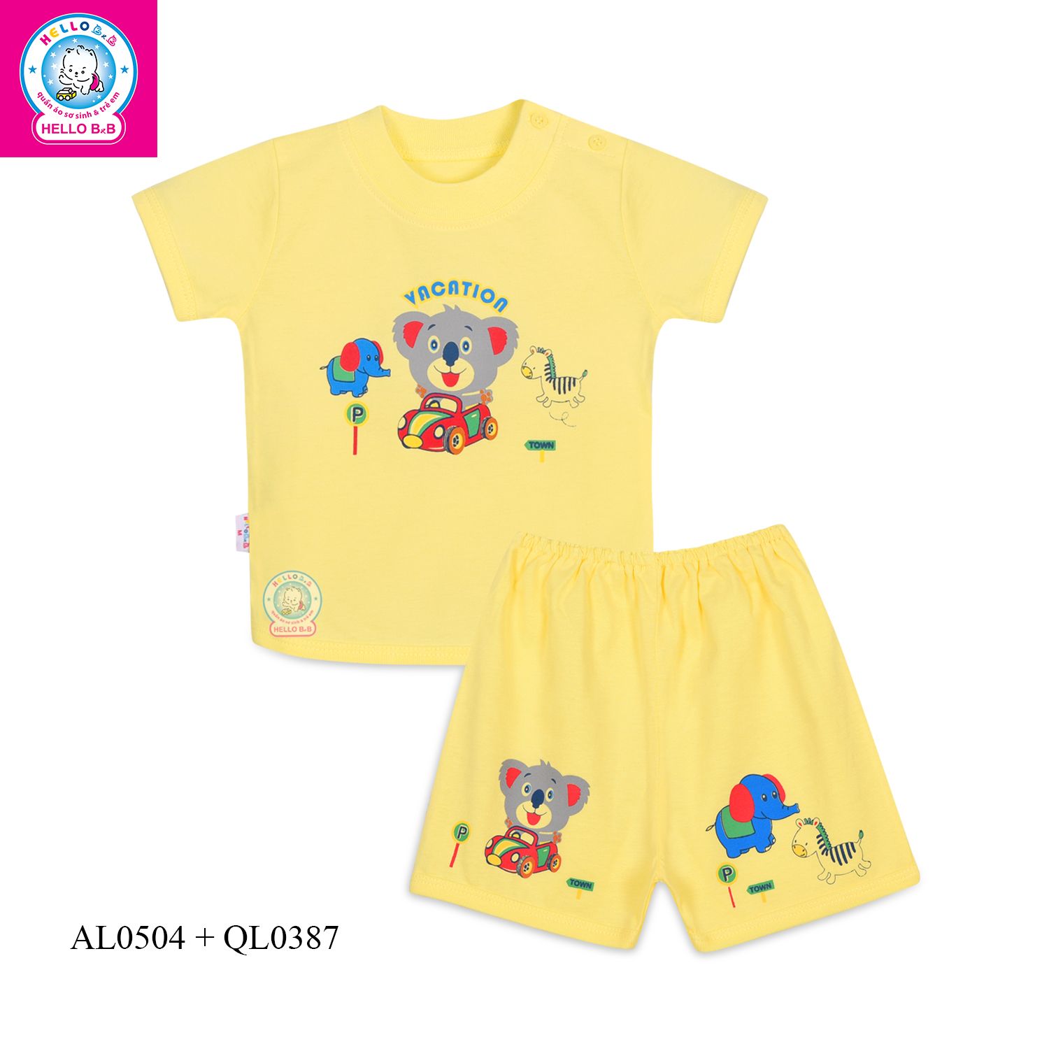 Áo sơ sinh cài vai tay ngắn AL0504- Hello B&B