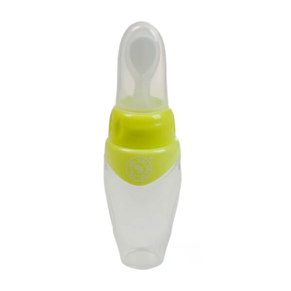 - Bình có muỗng với rãnh ở đầu dùng đút bột hoặc thức ăn đặc cho trẻ, bóp nhẹ vào thân bình cho dung dịch chảy ra.