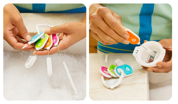 - 4 chổi cọ có kích thước khác nhau, phù hợp vệ sinh phụ kiện bình sữa, núm ti, ống hút... tùy theo mục đích sử dụng; dễ dàng làm sạch mọi ngóc ngách cho dù là nhỏ nhất.