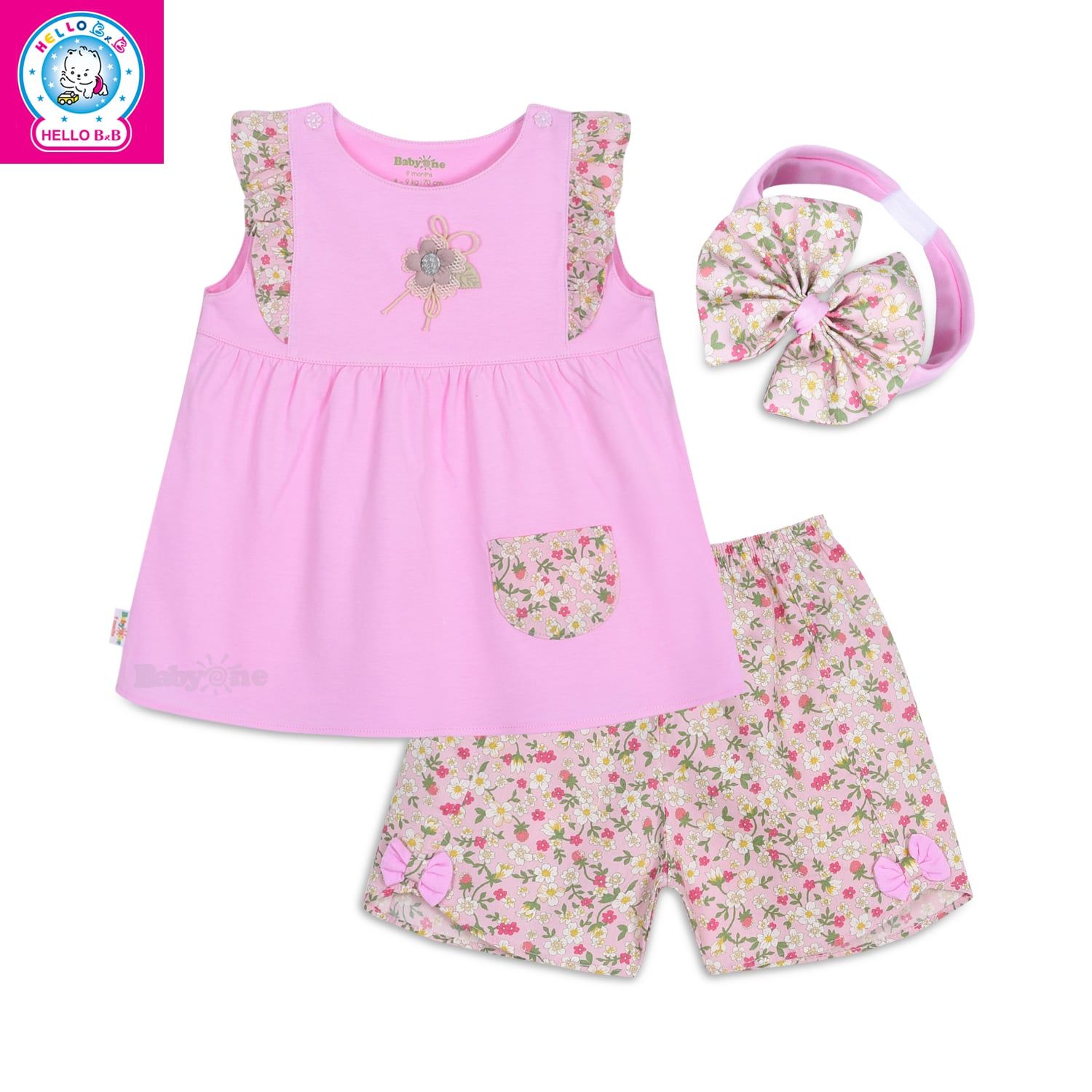 Bộ sát nách ngắn bé gái được tặng kèm 1 chiếc băng đô vải được đính nơ bướm to đồng màu với bộ đồ.