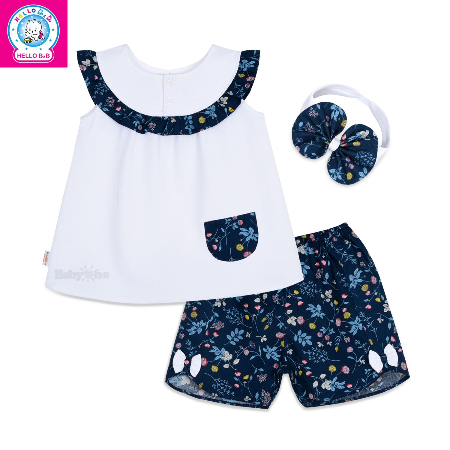 Bộ sát nách ngắn bé gái được tặng kèm 1 chiếc băng đô vải được đính nơ bướm to đồng màu với bộ đồ.