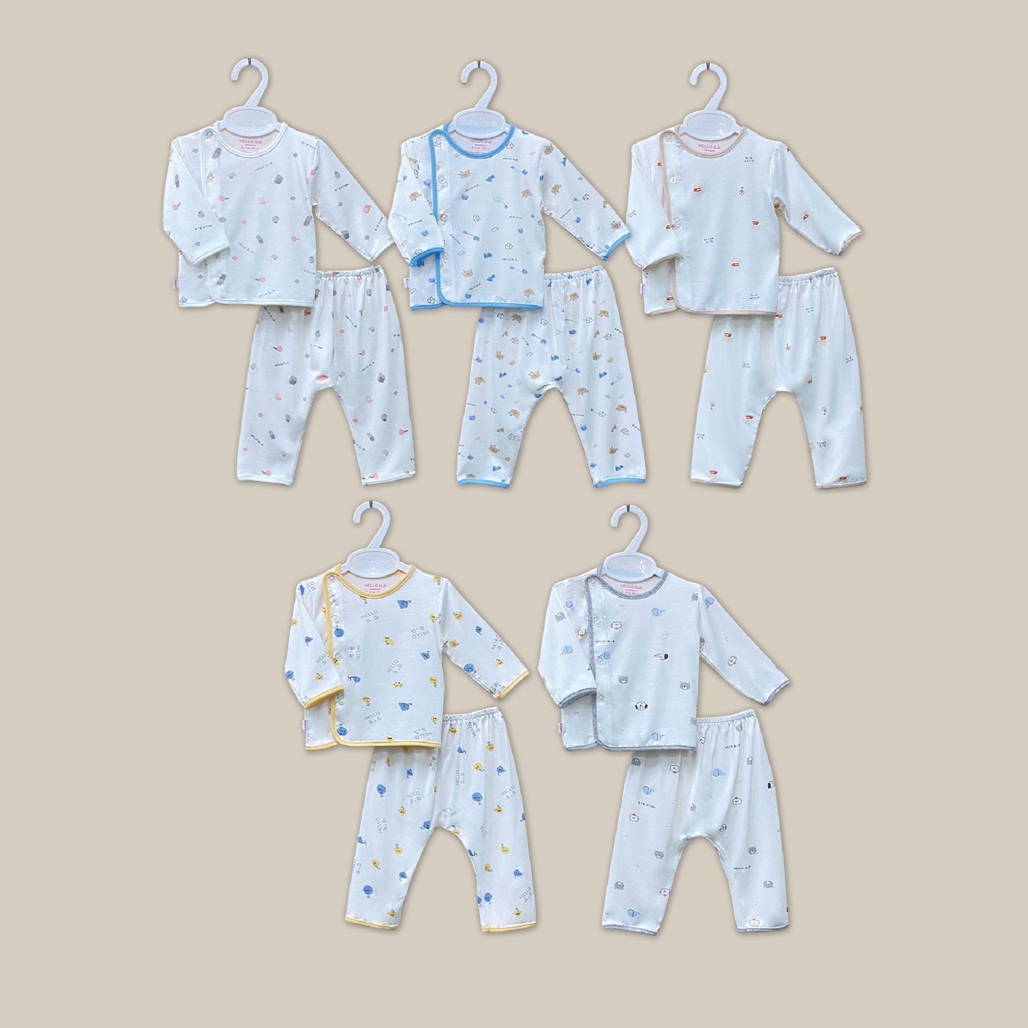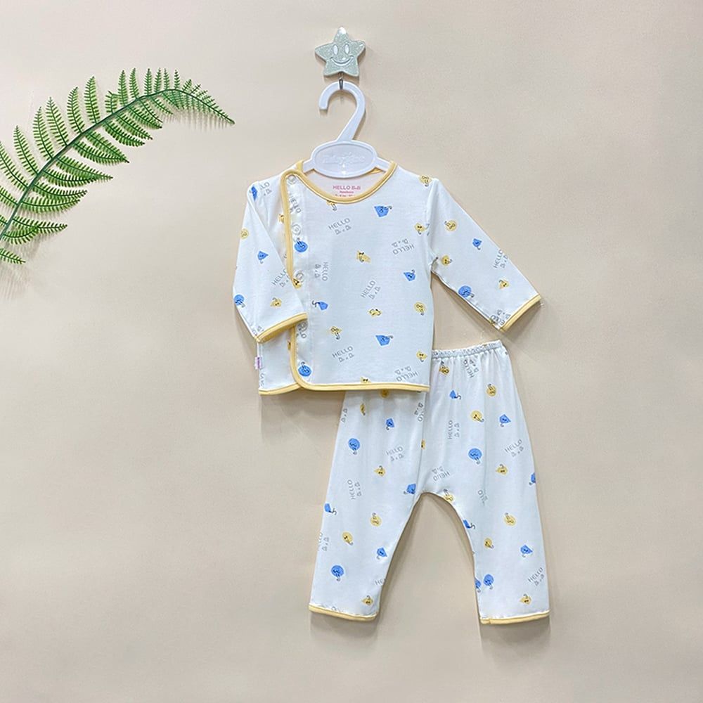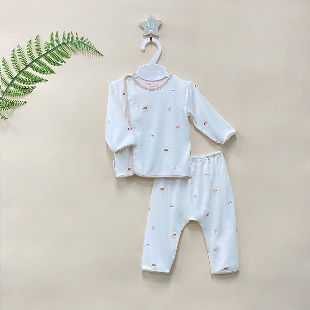 Bộ sơ sinh bác sĩ dài Bamboo in họa tiết 1814 - HELLO BnB