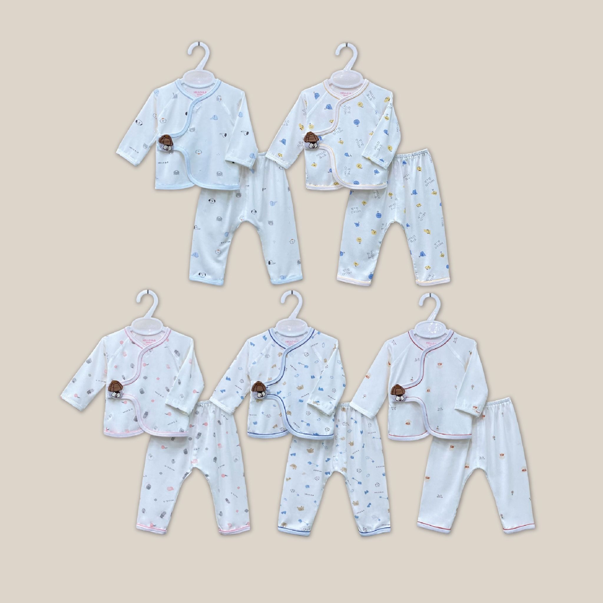 Bộ sơ sinh dài Bamboo đính handmade 1819 - HELLO BnB