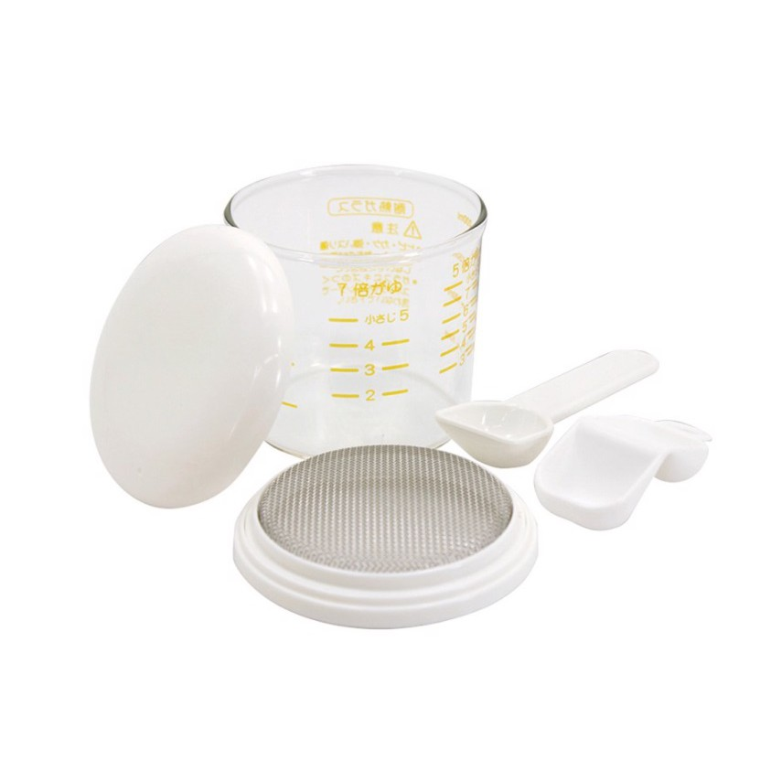 - Bộ sản phẩm gồm: cốc, rây, thìa đong, và dụng cụ lấy cốc khi còn nóng từ nồi cơm ra.