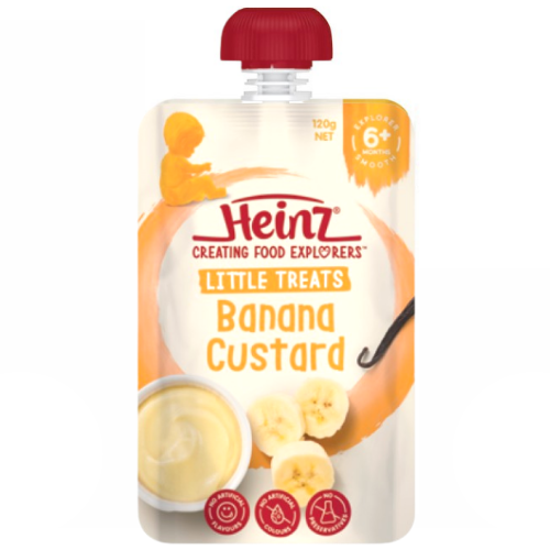 - Custard với chuối nghiền Heinz là thức ăn dặm được chế biến sẵn dành cho bé từ 6 tháng tuổi