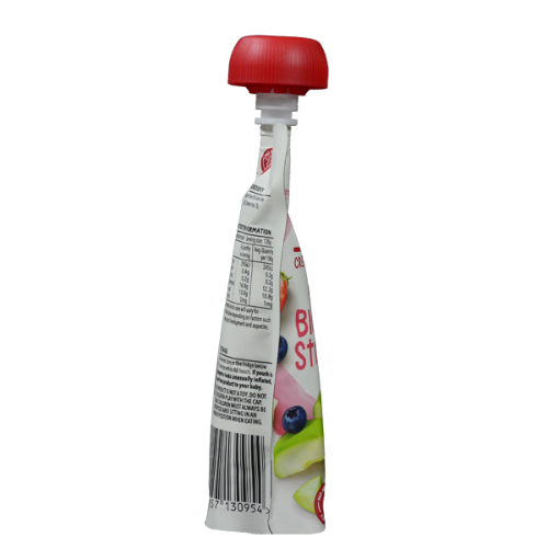 - Thành phần: Táo xay nhuyễn (90%), việt quất xay nhuyễn (6.3%), dâu tây xay nhuyễn (3.7%)