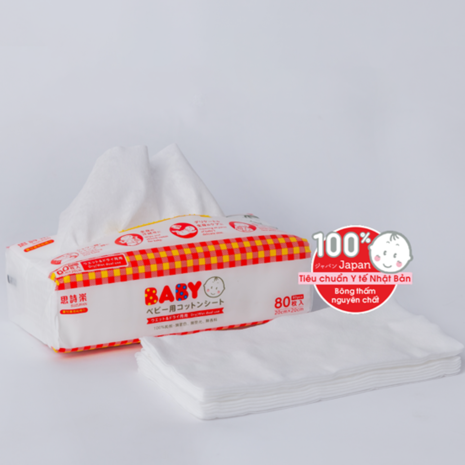 Khăn khô cotton kháng khuẩn Suzuran Japan (80 miếng/gói)