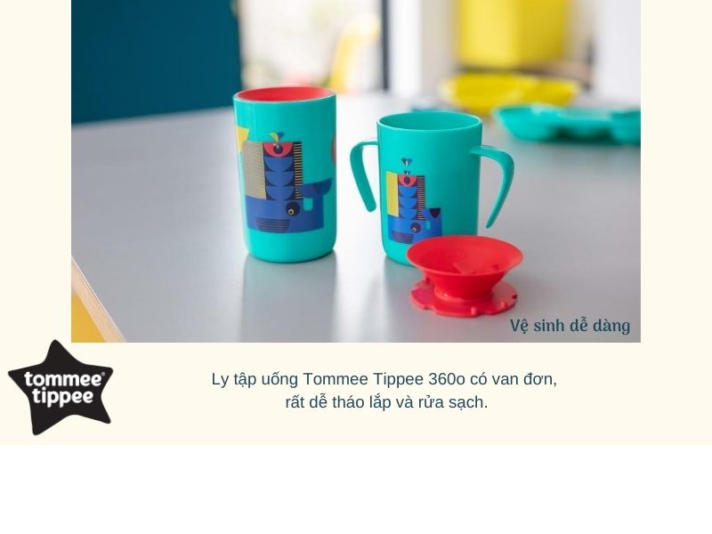 Ly tập uống Tommee Tippee 360o có van đơn, rất dễ tháo lắp và rửa sạch.