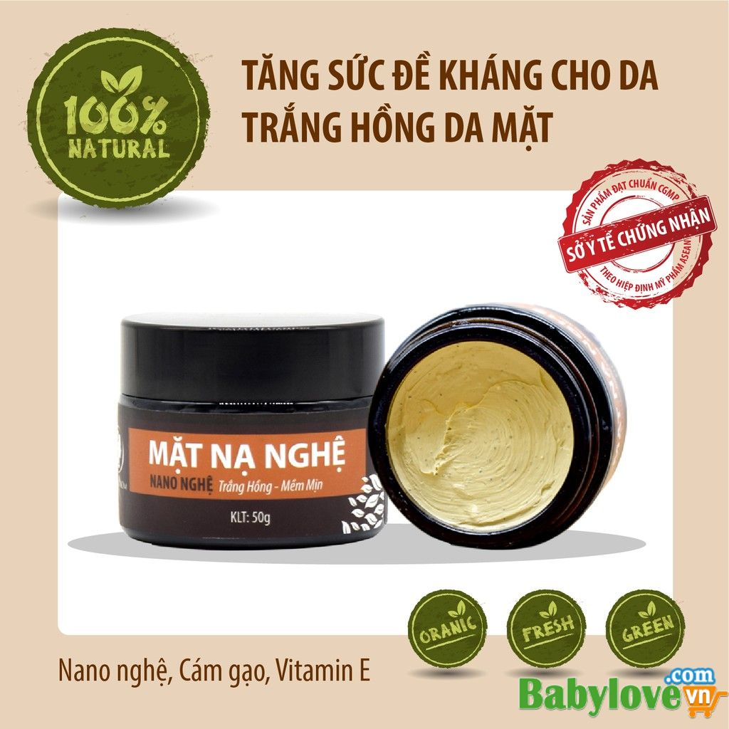- Đặc biệt, mặt nạ nano nghệ này không có hại, không lo dị ứng, không gây vàng da vì đây là nano nghệ và nó rất tiện lợi vì tất cả đã được gói gọn trong 1 hũ mặt nạ 50g này.