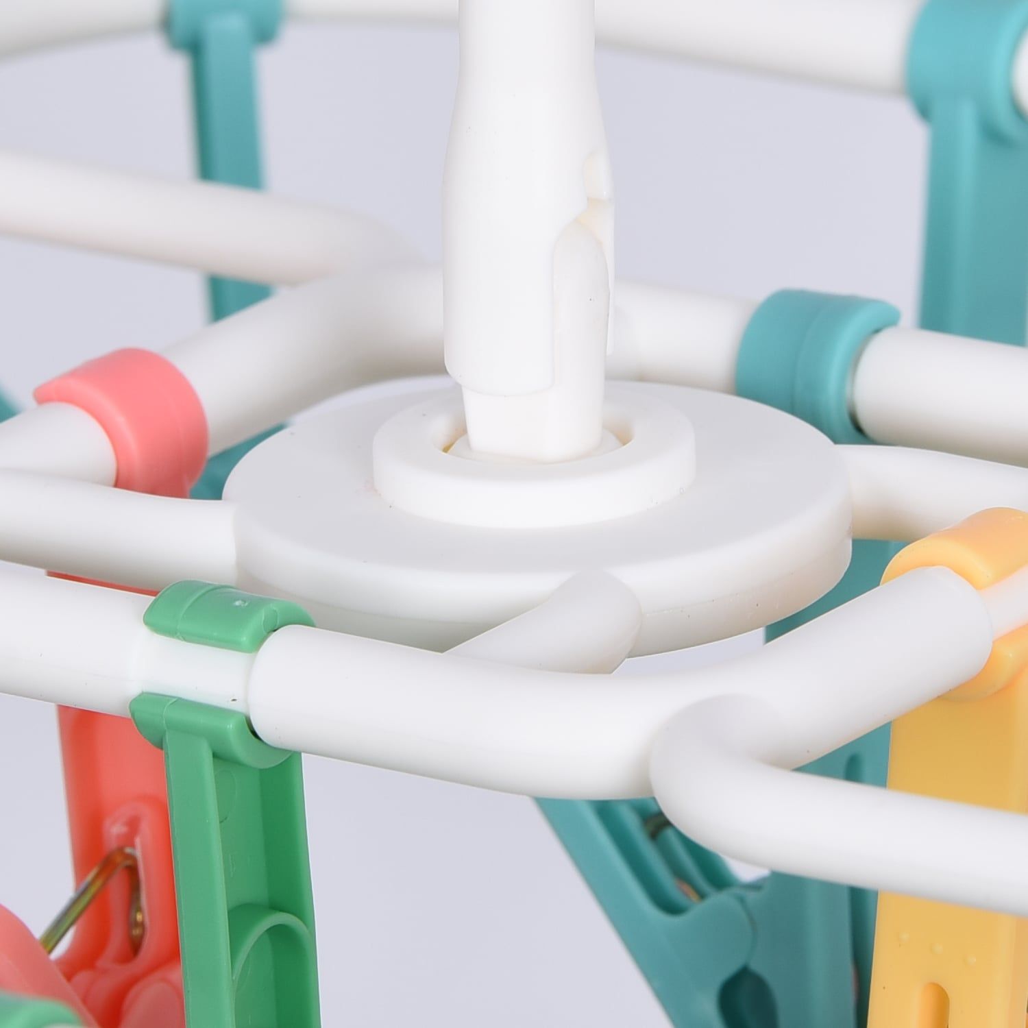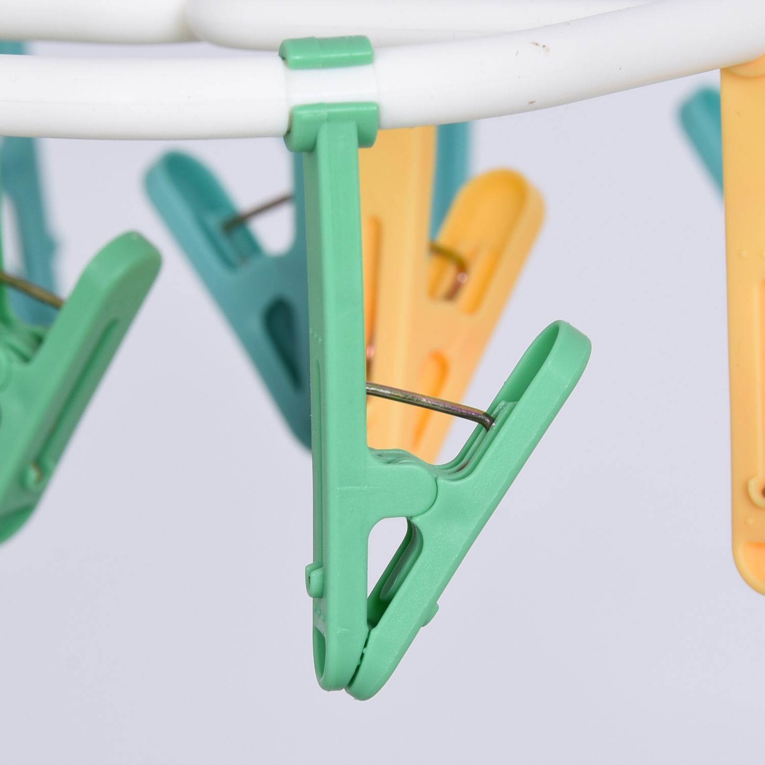 - Móc gồm 32 chiếc kẹp nhỏ giúp bạn phơi khăn tay, tất, găng tay, khăn len của bé mà không lo bị rơi dù trời gió to.