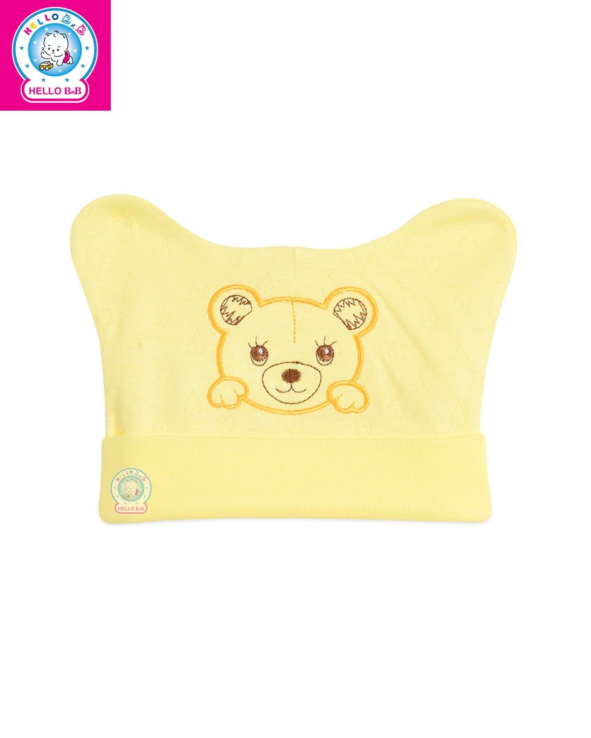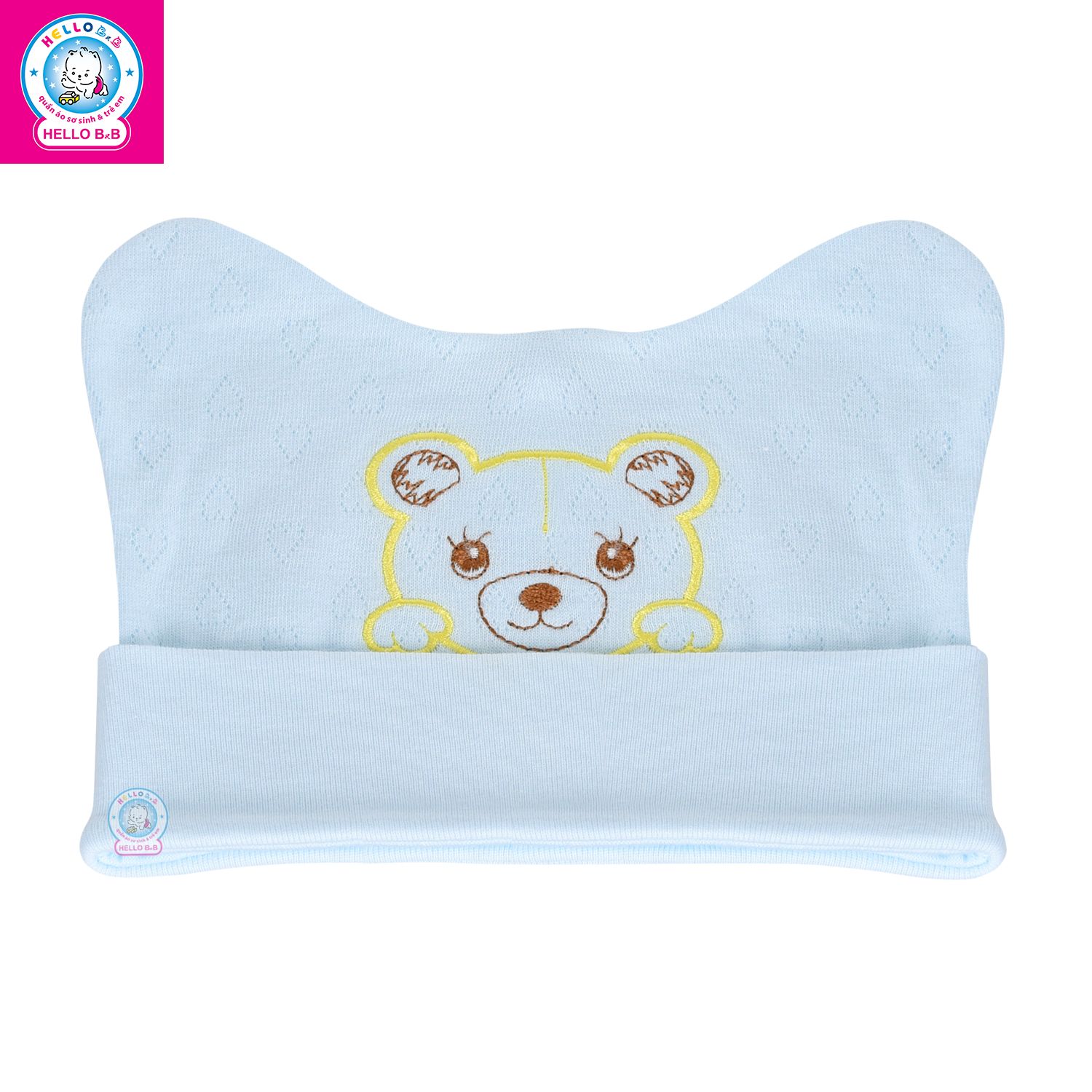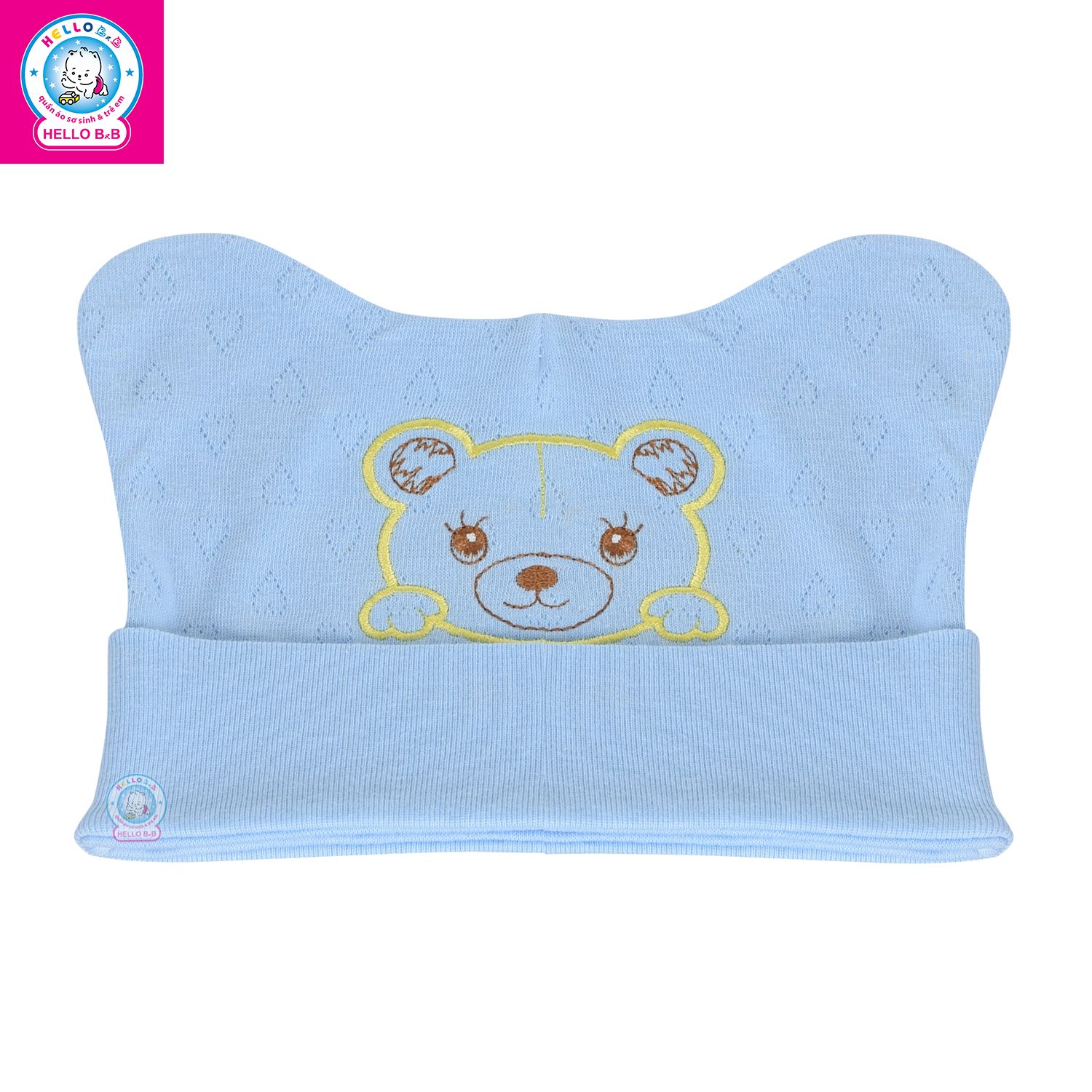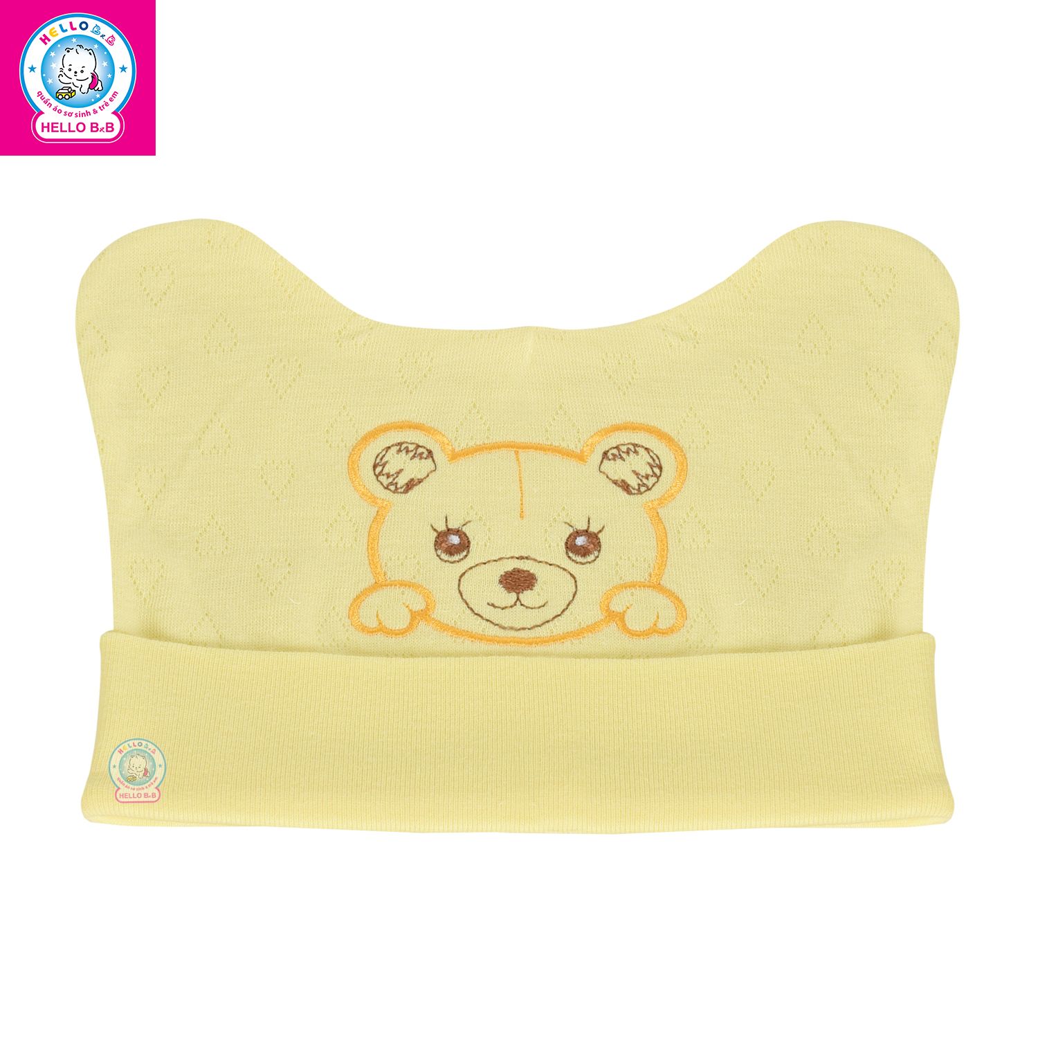 Kiểu dáng: chiếc nón sơ sinh được thiết kế lật viền và có bo chun co giãn nhẹ, nón nhẹ nhàng ôm trọn phần đầu bé, nón thiết kế ôm vừa vặn nhưng không quá chật, giúp bé cảm thấy dễ chịu khi mang cả ngày dài. Điểm nhấn của chiếc nón là họa tiết thêu các thú cưng nhỏ nhắn đầy sinh động, công nghệ dệt in hiện đại với các lỗ thoáng khí giúp bé luôn cảm thấy thoải mái, thoáng mát, không hầm bí khi mang. Hai bên nón được may kết hợp thêm 2 chiếc tai gấu, bé sẽ trông thật đáng yêu, dễ thương và khả ái.