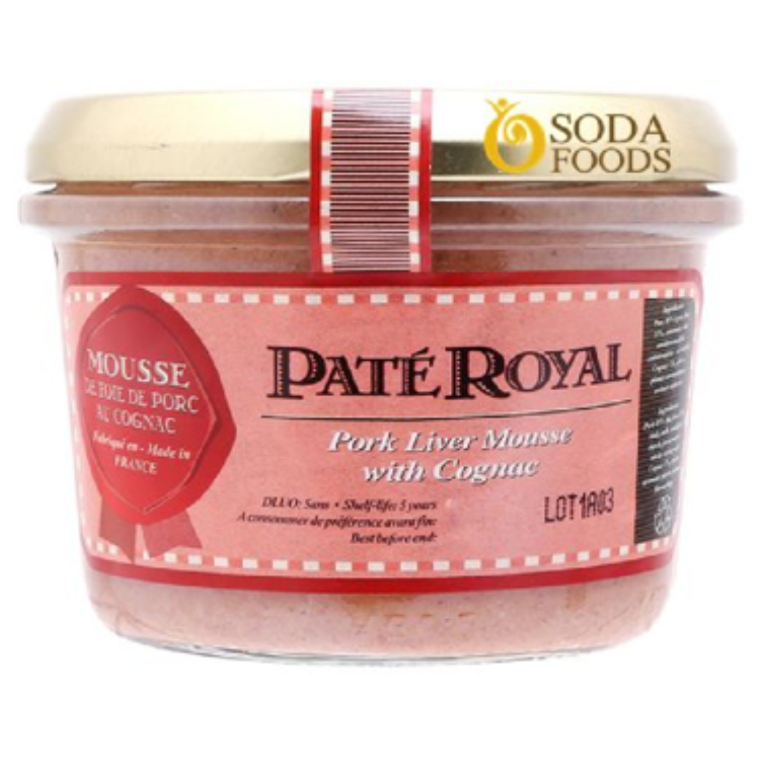 - Pate Royal Gan Lợn Vị Cognac (180g) được làm từ nguyên liệu gan, thịt tươi sạch, kết hợp hoàn hảo cùng các loại loại gia vị, các thành phần đều được xay nhuyễn mịn tạo nên chất lượng tuyệt hảo.