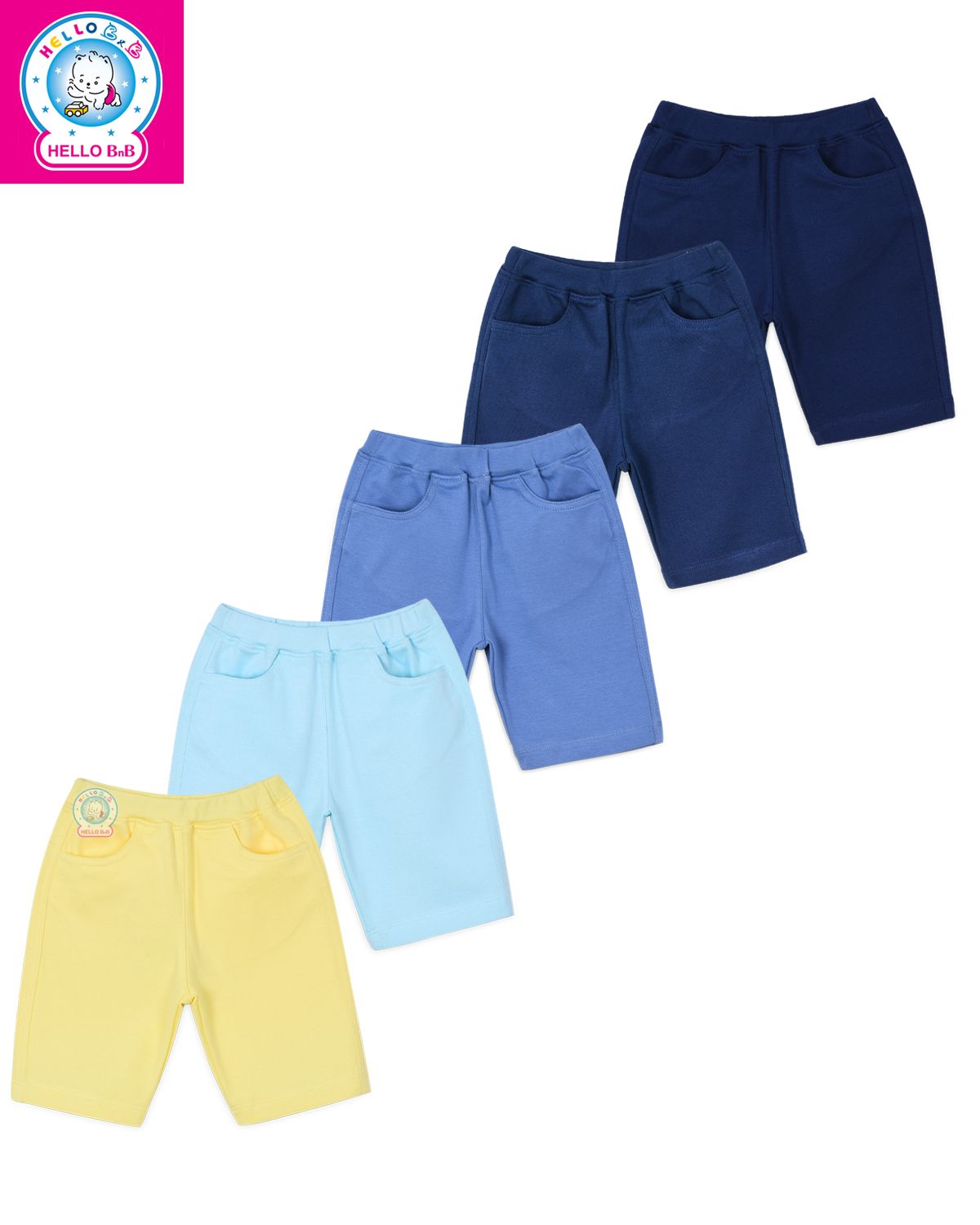 Quần có 5 màu cho bé dễ dàng thay đổi mỗi ngày: màu vàng, màu xanh da trời, màu xanh dương, màu xanh navy và màu xanh đen.