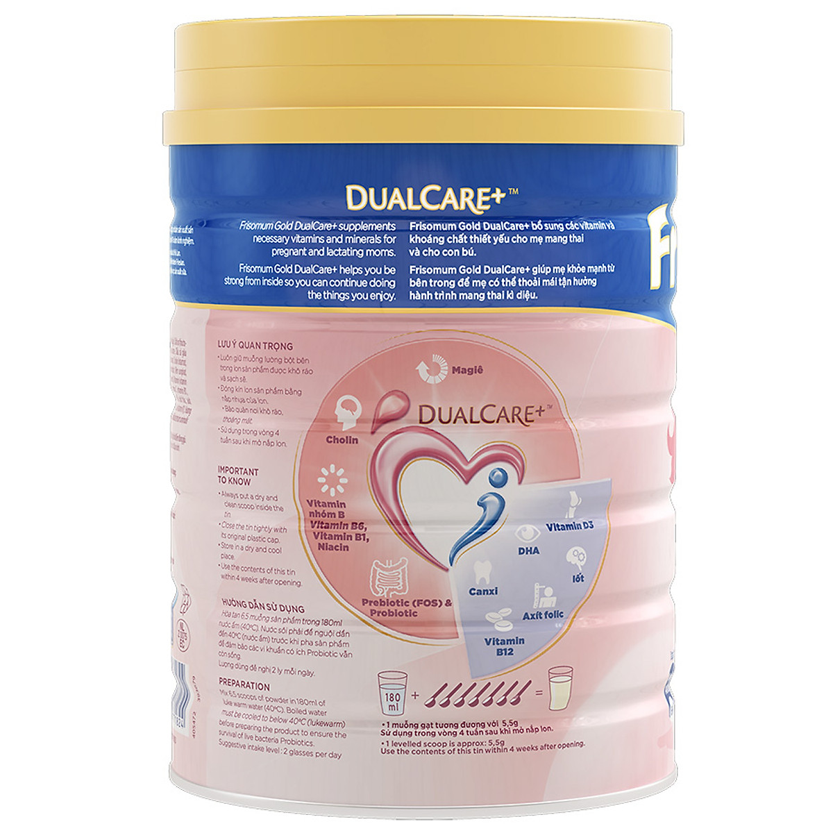 Sữa Frisomum Gold phát triển công thức mới với hệ dưỡng chất chăm sóc kép DualCare+, bổ sung các vitamin và khoáng chất thiết yếu cho cả mẹ và bé:
