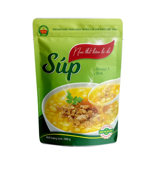 - Súp nui ngon ngọt nước với thịt bằm kết hợp với bí đỏ. Súp nui nhỏ mềm tan trong ngay trong miệng. Không chỉ thế, nước súp hầm với thịt còn chứa hàm lượng Protein và các loại vitamin B bổ sung năng lượng cho một ngày dài năng động. Bí đỏ mềm ngọt hòa quyện tạo nên hương vị đậm đà ngây ngất khi dùng ngay lầu đầu tiên. Hàm lượng Omega-3 cao hỗ trợ trí não và hỗ trợ phát triển cơ thể. Dùng thử ngay thôi nào!