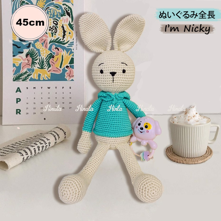 - Khác với nhiều loại thú nhồi bông ngoài thị trường, THỎ NICKY nhà Hinata được làm từ chất liệu len sợi cotton đảm bảo an toàn khi tiếp xúc với làn da nhạy cảm của bé. Sản phẩm hoàn toàn được làm thủ công bằng tay, chăm chút kĩ càng từng chi tiết.