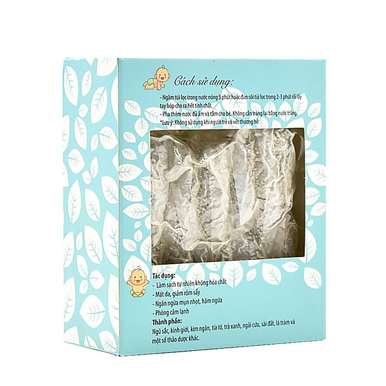 - Sản phẩm được đóng gói dạng túi lọc vô cùng tiện lợi, giúp mẹ tiết kiệm thời gian để có ngay một chậu nước tắm thảo dược cho bé, mà không phải mất nhiều thời gian đi mua và đun từ lá thảo dược.